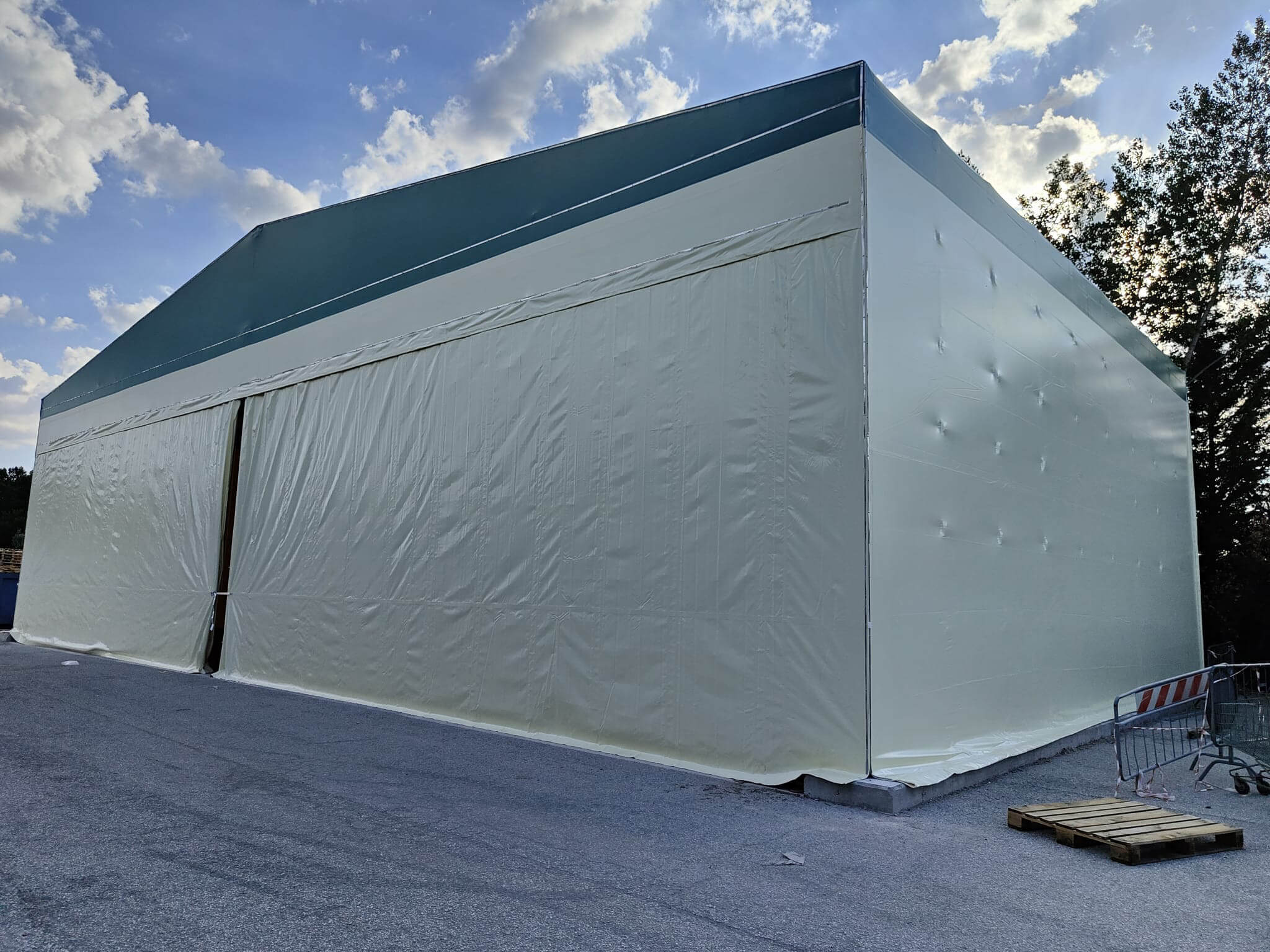 Tunnel Mobile Auto Portante con copertura in telo pvc classe 2 – Tetto doppia pendenza. Luogo di installazione: Marghera (VE)